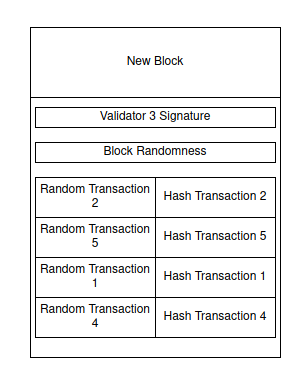 <figure><img src="https://4218018686-files.gitbook.io/~/files/v0/b/gitbook-x-prod.appspot.com/o/spaces%2FQZUayH0NLdS4vsbfsvNq%2Fuploads%2FpGb5jOaLZuAlvXIws2lc%2FNewBlock.png?alt=media&#x26;token=90bce65c-6e24-4f41-9925-c654e51dead1" alt=""><figcaption><p>New block is created with randomness seed, Validator signature and the transactions</p></figcaption></figure>
